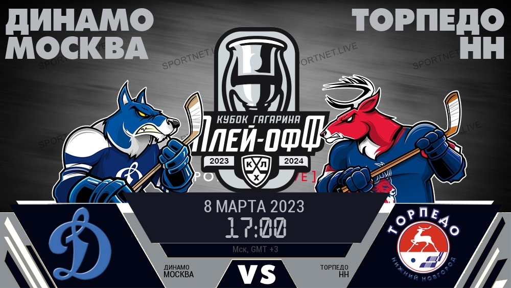 8 марта 2023 года, состоялась онлайн трансляция хоккейного матча между хоккейным клубом Динамо Москва и хоккейным клубом Торпедо НН, проходящего в рамках чемпионата КХЛ.
