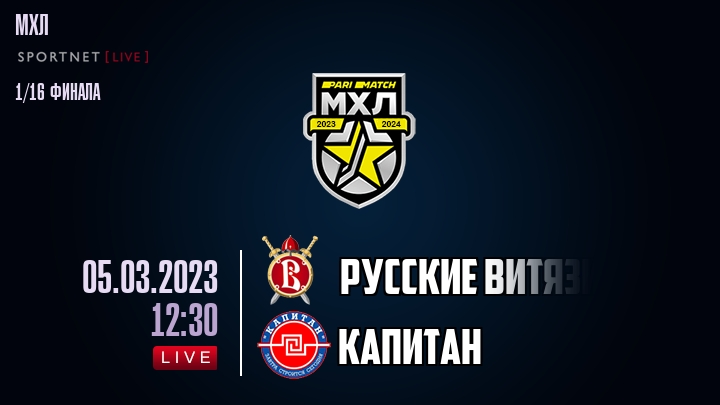 5 марта 2023 года, состоялась онлайн трансляция хоккейного матча между хоккейным клубом Русские Витязи и хоккейным клубом Капитан, проходящего в рамках чемпионата МХЛ.