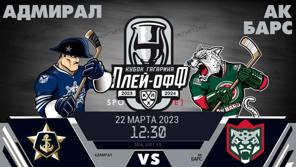 22 марта 2023 года, состоялась онлайн трансляция хоккейного матча между хоккейным клубом Адмирал и хоккейным клубом Ак Барс, проходящего в рамках чемпионата КХЛ.