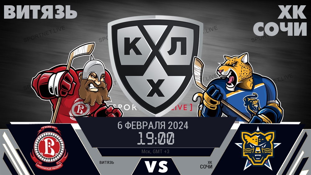 6 февраля 2024 года, состоялась онлайн трансляция хоккейного матча между хоккейным клубом Витязь и хоккейным клубом ХК Сочи, проходящего в рамках чемпионата КХЛ.