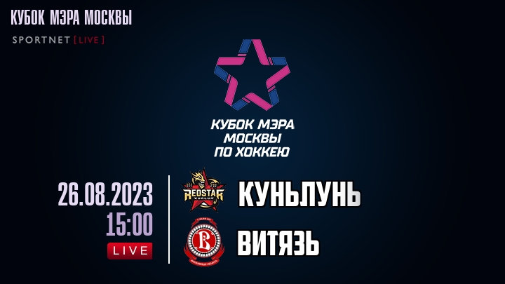 26 августа 2023 года, состоялась онлайн трансляция хоккейного матча между хоккейным клубом Куньлунь Ред Стар и хоккейным клубом Витязь, проходящего в рамках Кубка мэра Москвы.
