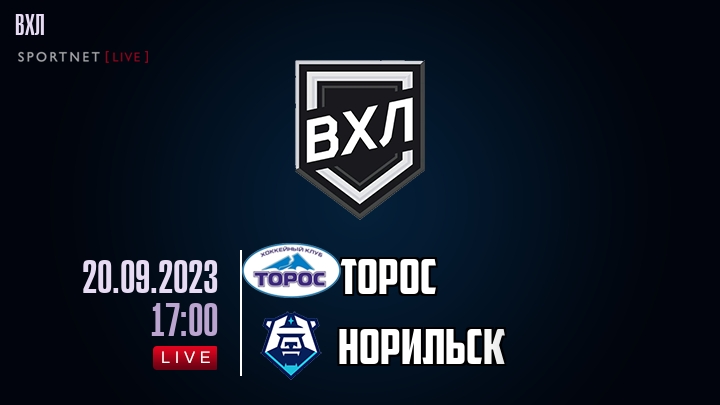 20 сентября 2023 года, состоялась онлайн трансляция хоккейного матча между хоккейным клубом Торос и хоккейным клубом Норильск, проходящего в рамках чемпионата ВХЛ.