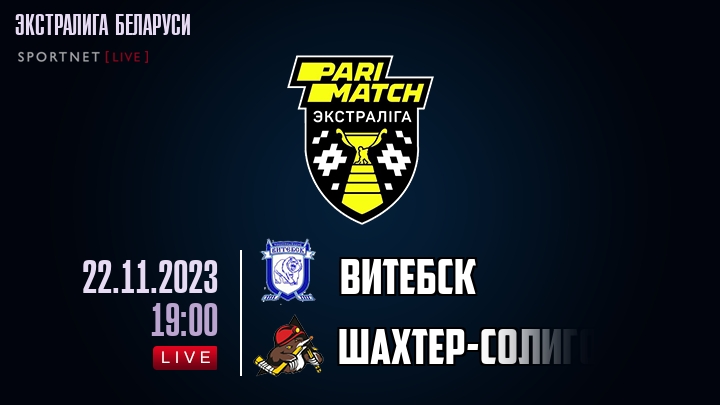 22 ноября 2023 года, состоялась онлайн трансляция хоккейного матча между хоккейным клубом Витебск и хоккейным клубом Шатер-Солигорск, проходящего в рамках Экстралиги Беларуси.