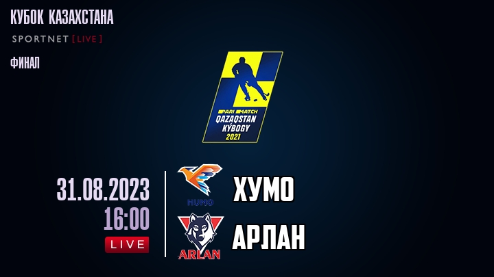 31 августа 2023 года, состоялась онлайн трансляция хоккейного матча между хоккейным клубом Хумо и хоккейным клубом Арлан, проходящего в рамках Кубка Казахстана.