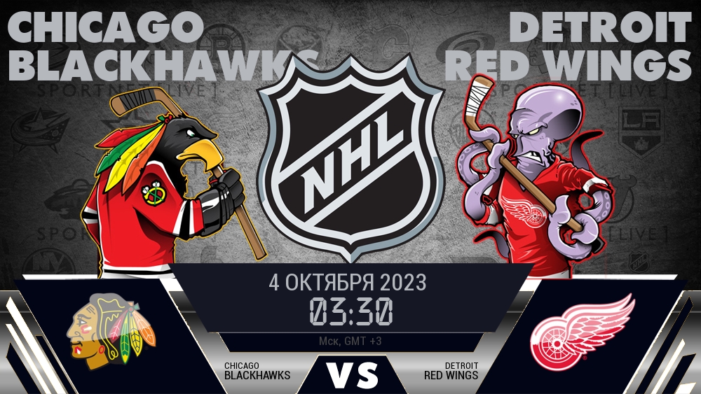 4 октября 2023 года, состоялась онлайн трансляция хоккейного матча между хоккейным клубом Чикаго Блэкхокс и хоккейным клубом Детройт Ред Уингз, проходящего в рамках предсезонки NHL.