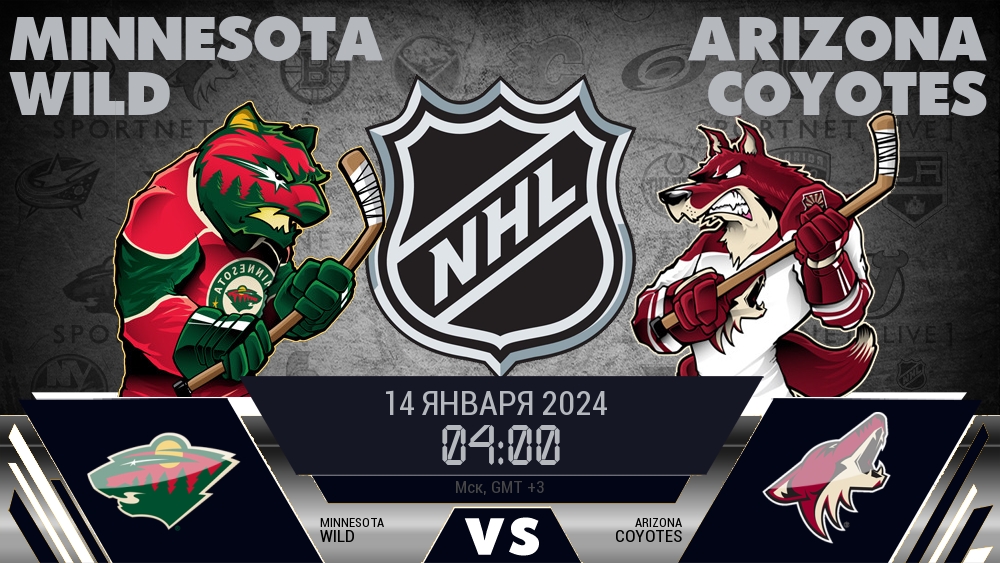 14 января 2024 года, состоялась онлайн трансляция хоккейного матча между хоккейным клубом Миннесота Уайлд и хоккейным клубом Аризона Койотс, проходящего в рамках чемпионата NHL.