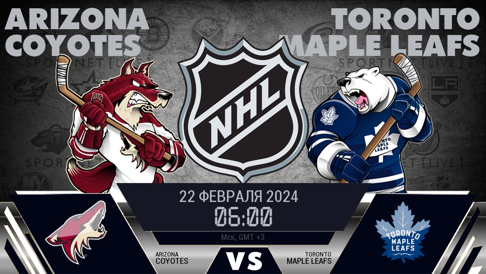 22 февраля 2024 года, состоялась онлайн трансляция хоккейного матча между хоккейным клубом Аризона Койотс и хоккейным клубом Торонто Мэйпл Ливз, проходящего в рамках чемпионата NHL.