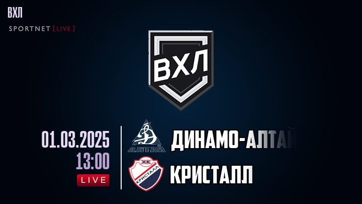 1 марта 2025 года, состоялась онлайн трансляция хоккейного матча между хоккейным клубом Динамо-Алтай и хоккейным клубом Кристалл, проходящего в рамках чемпионата ВХЛ.