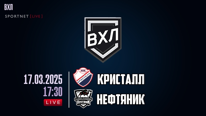 17 марта 2025 года, состоялась онлайн трансляция хоккейного матча между хоккейным клубом Кристалл и хоккейным клубом Нефтяник, проходящего в рамках чемпионата ВХЛ.
