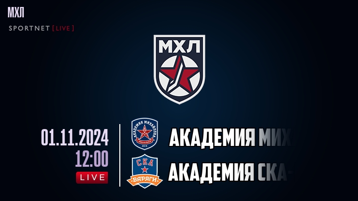 1 ноября 2024 года, состоялась онлайн трансляция хоккейного матча между хоккейным клубом Академия Михайлова Юниор и хоккейным клубом Академия СКА-Юниор, проходящего в рамках чемпионата МХЛ.