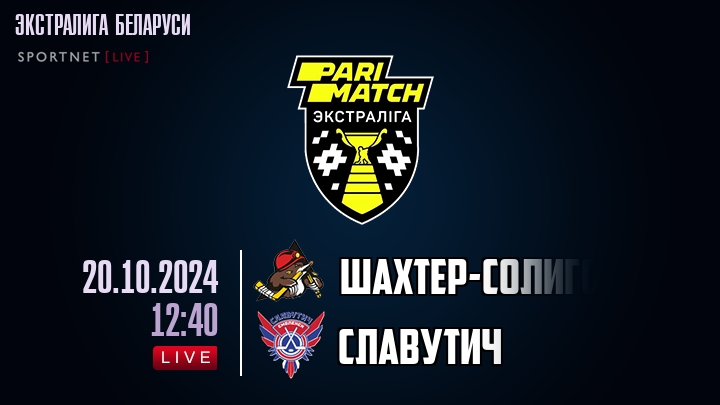 20 октября 2024 года, состоялась онлайн трансляция хоккейного матча между хоккейным клубом Шатер-Солигорск и хоккейным клубом Славутич, проходящего в рамках Экстралиги Беларуси.