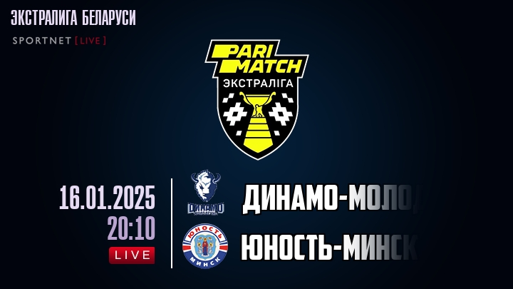 16 января 2025 года, состоялась онлайн трансляция хоккейного матча между хоккейным клубом Динамо-Молодечно и хоккейным клубом Юность-Минск, проходящего в рамках Экстралиги Беларуси.