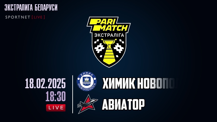 18 февраля 2025 года, состоялась онлайн трансляция хоккейного матча между хоккейным клубом Химик Новополоцк и хоккейным клубом Авиатор, проходящего в рамках Экстралиги Беларуси.