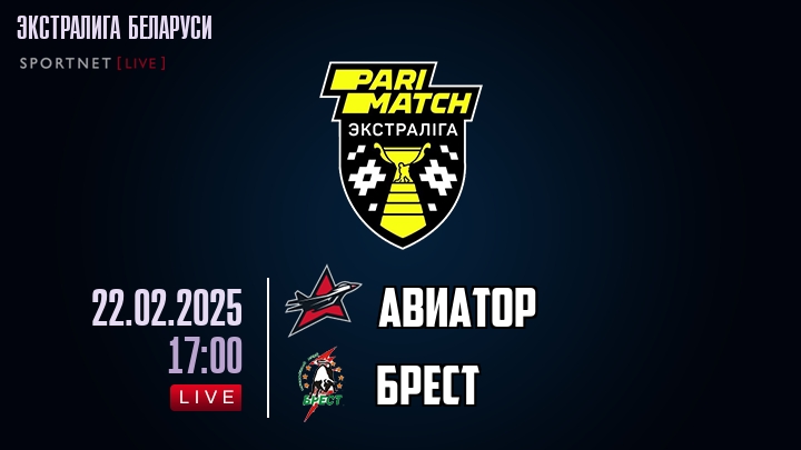 22 февраля 2025 года, состоялась онлайн трансляция хоккейного матча между хоккейным клубом Авиатор и хоккейным клубом Брест, проходящего в рамках Экстралиги Беларуси.
