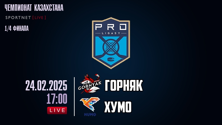 24 февраля 2025 года, состоялась онлайн трансляция хоккейного матча между хоккейным клубом Горняк и хоккейным клубом Хумо, проходящего в рамках чемпионата Казахстана.