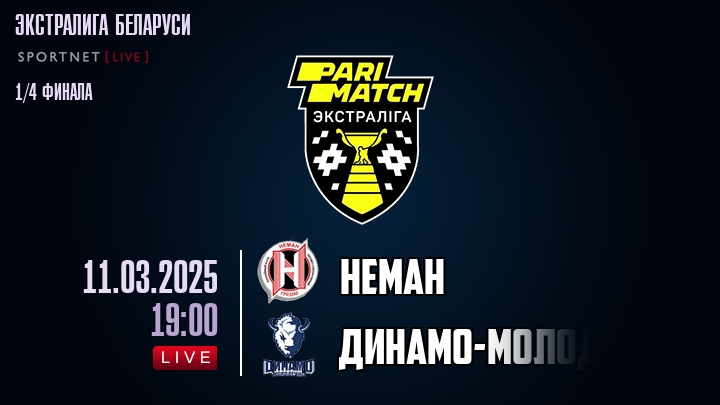 11 марта 2025 года, состоялась онлайн трансляция хоккейного матча между хоккейным клубом Неман и хоккейным клубом Динамо-Молодечно, проходящего в рамках Экстралиги Беларуси.