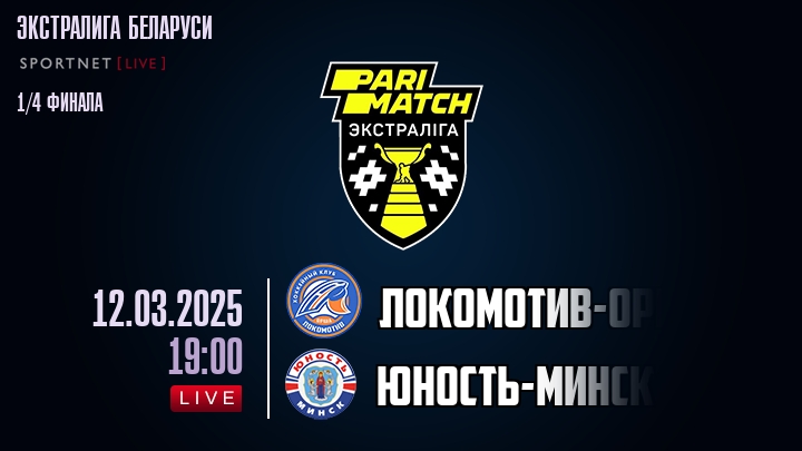 12 марта 2025 года, состоялась онлайн трансляция хоккейного матча между хоккейным клубом Локомотив-Орша и хоккейным клубом Юность-Минск, проходящего в рамках Экстралиги Беларуси.