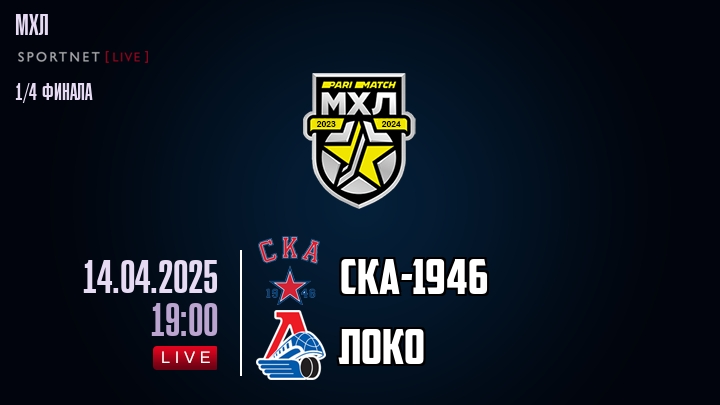 14 апреля 2025 года, состоялась онлайн трансляция хоккейного матча между хоккейным клубом СКА- и хоккейным клубом Локо, проходящего в рамках чемпионата МХЛ.