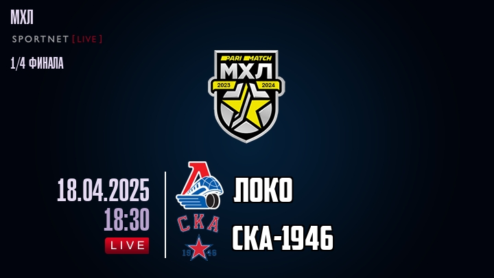 18 апреля 2025 года, состоялась онлайн трансляция хоккейного матча между хоккейным клубом Локо и хоккейным клубом СКА-, проходящего в рамках чемпионата МХЛ.
