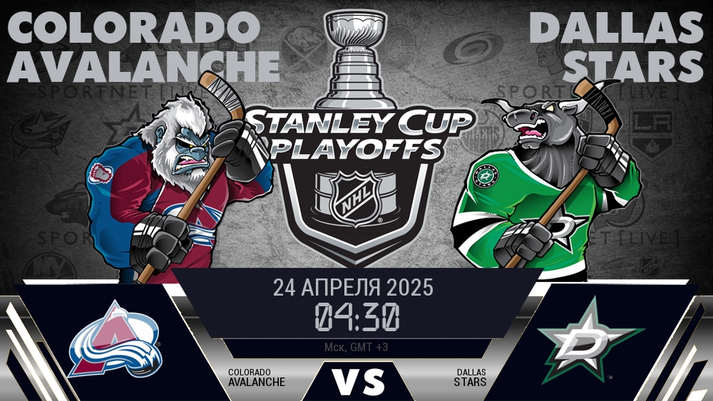 24 апреля 2025 года, состоялась онлайн трансляция хоккейного матча между хоккейным клубом Колорадо Эвеланш и хоккейным клубом Даллас Старз, проходящего в рамках чемпионата NHL.
