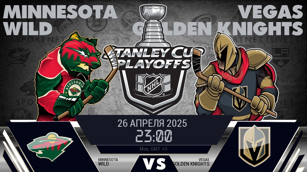 26 апреля 2025 года, состоялась онлайн трансляция хоккейного матча между хоккейным клубом Миннесота Уайлд и хоккейным клубом Вегас Голден Найтс, проходящего в рамках чемпионата NHL.