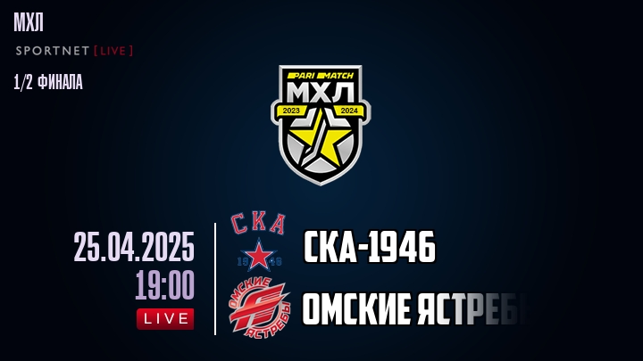 25 апреля 2025 года, состоялась онлайн трансляция хоккейного матча между хоккейным клубом СКА- и хоккейным клубом Омские Ястребы, проходящего в рамках чемпионата МХЛ.