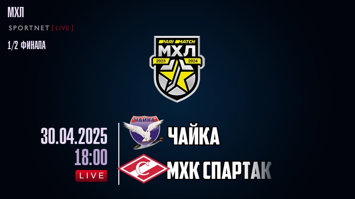 30 апреля 2025 года, состоялась онлайн трансляция хоккейного матча между хоккейным клубом Чайка и хоккейным клубом МХК Спартак, проходящего в рамках чемпионата МХЛ.