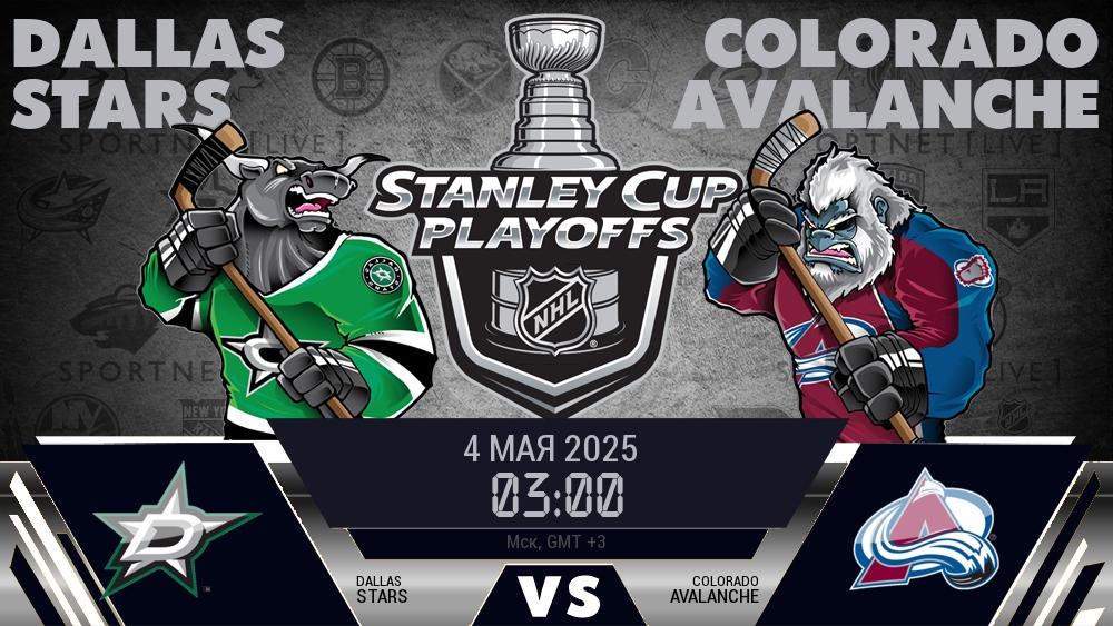 4 мая 2025 года, состоялась онлайн трансляция хоккейного матча между хоккейным клубом Даллас Старз и хоккейным клубом Колорадо Эвеланш, проходящего в рамках чемпионата NHL.