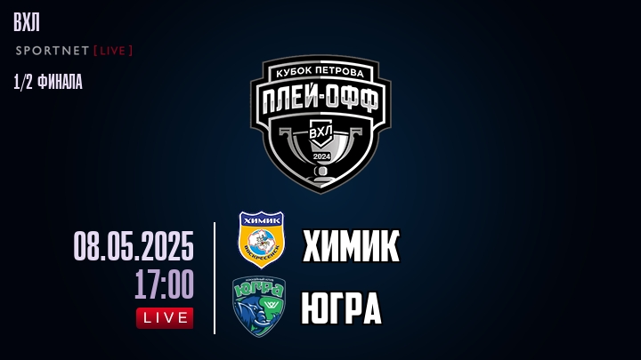 8 мая 2025 года, состоялась онлайн трансляция хоккейного матча между хоккейным клубом Химик и хоккейным клубом Югра, проходящего в рамках чемпионата ВХЛ.