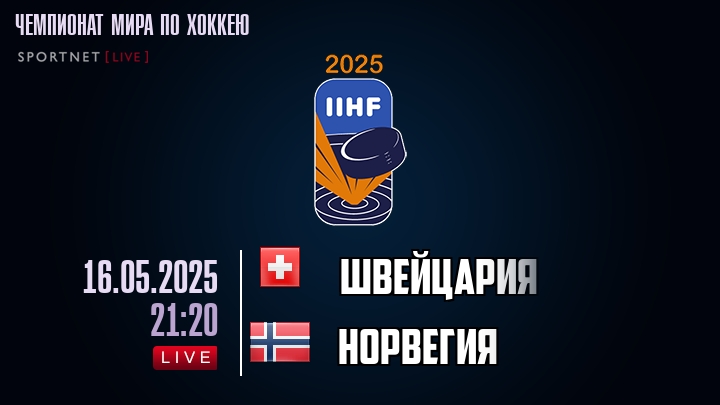 16 мая 2025 года, состоялась онлайн трансляция хоккейного матча между сборной Швейцарии и сборной Норвегии, проходящего в рамках Чемпионата мира по хоккею.