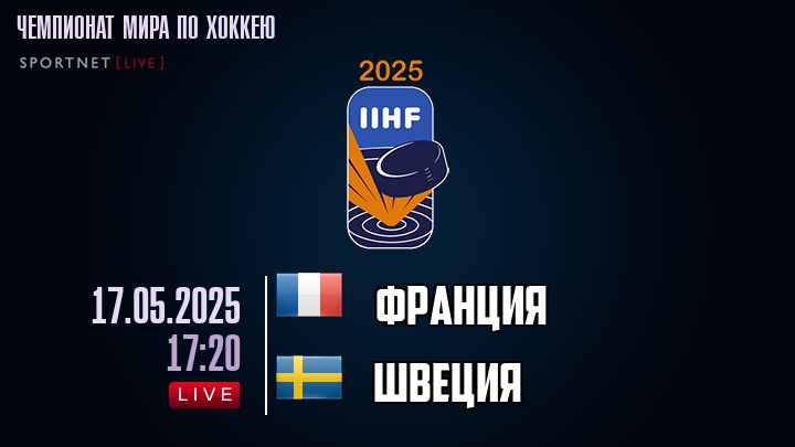 17 мая 2025 года, состоялась онлайн трансляция хоккейного матча между сборной Франции и сборной Швеции, проходящего в рамках Чемпионата мира по хоккею.