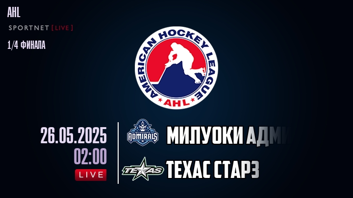 26 мая 2025 года, состоялась онлайн трансляция хоккейного матча между хоккейным клубом Милуоки Адмиралс и хоккейным клубом Техас Старз, проходящего в рамках чемпионата AHL.
