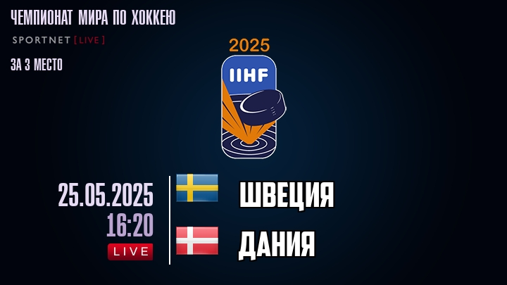 25 мая 2025 года, состоялась онлайн трансляция хоккейного матча между сборной Швеции и сборной Дании, проходящего в рамках Чемпионата мира по хоккею.