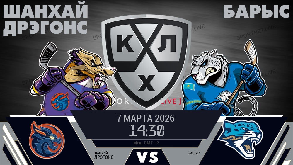 7 марта 2026 года, мы предлагаем посмотреть онлайн трансляцию хоккейного матча между хоккейным клубом Шанхай Дрэгонс и хоккейным клубом Барыс, проходящего в рамках чемпионата КХЛ.