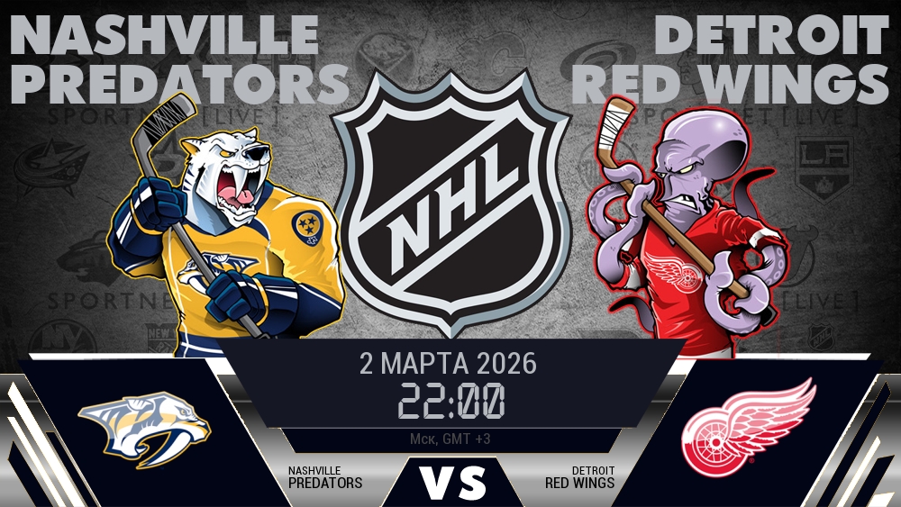 2 марта 2026 года, мы предлагаем посмотреть онлайн трансляцию хоккейного матча между хоккейным клубом Нэшвилл Предаторз и хоккейным клубом Детройт Ред Уингз, проходящего в рамках чемпионата NHL.
