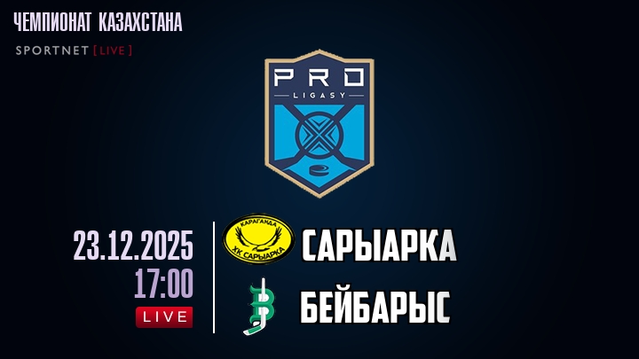 23 декабря 2025 года, состоялась онлайн трансляция хоккейного матча между хоккейным клубом Сарыарка и хоккейным клубом Бейбарыс, проходящего в рамках чемпионата Казахстана.