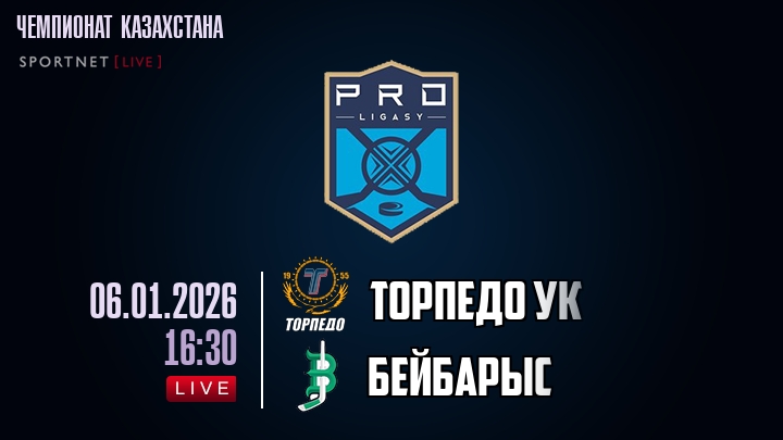 6 января 2026 года, состоялась онлайн трансляция хоккейного матча между хоккейным клубом Торпедо УК и хоккейным клубом Бейбарыс, проходящего в рамках чемпионата Казахстана.