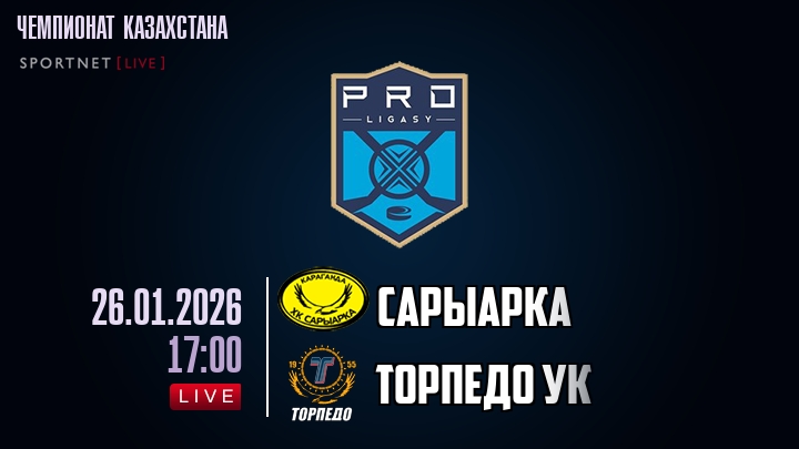 26 января 2026 года, состоялась онлайн трансляция хоккейного матча между хоккейным клубом Сарыарка и хоккейным клубом Торпедо УК, проходящего в рамках чемпионата Казахстана.