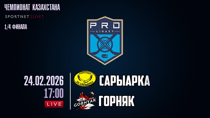 Сегодня, 24 февраля 2026 года, мы предлагаем посмотреть онлайн трансляцию хоккейного матча между хоккейным клубом Сарыарка и хоккейным клубом Горняк, проходящего в рамках Серии 1/4 финала ПЛЕЙ-ОФФ чемпионата Казахстана.