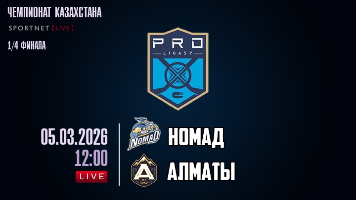 В 12-00 ХК «Номад» в домашнем матче попробует взять верх над ХК «Алматы». В прошлой встрече между командой Алматы и командой Номад, которая состоялась 2 марта 2026 года - победу в овертайме со счетом 1:0 одержала команда Алматы.