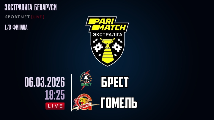 Сегодня, 6 марта 2026 года, мы предлагаем посмотреть онлайн трансляцию хоккейного матча между хоккейным клубом Брест и хоккейным клубом Гомель, проходящего в рамках Экстралиги Беларуси.