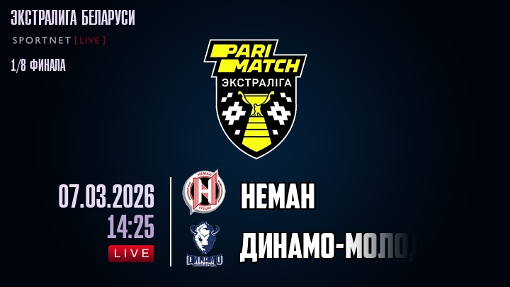 Сегодня, 7 марта 2026 года, мы предлагаем посмотреть онлайн трансляцию хоккейного матча между хоккейным клубом Неман и хоккейным клубом Динамо-Молодечно, проходящего в рамках Экстралиги Беларуси.
