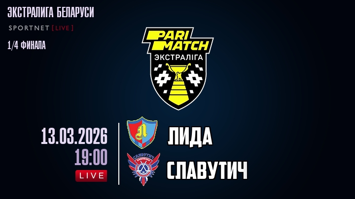 Сегодня, 13 марта 2026 года, мы предлагаем посмотреть онлайн трансляцию хоккейного матча между хоккейным клубом Лида и хоккейным клубом Славутич, проходящего в рамках Серии 1/4 финала ПЛЕЙ-ОФФ Экстралиги Беларуси.