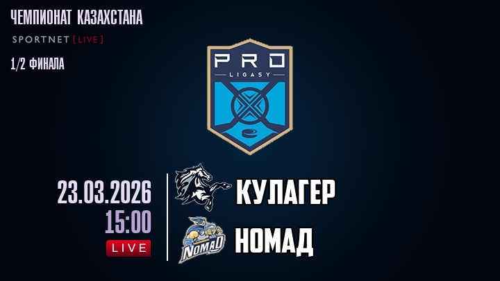 23 марта 2026 года, мы предлагаем посмотреть онлайн трансляцию хоккейного матча между хоккейным клубом Кулагер и хоккейным клубом Номад, проходящего в рамках Серии 1/2 финала ПЛЕЙ-ОФФ чемпионата Казахстана.