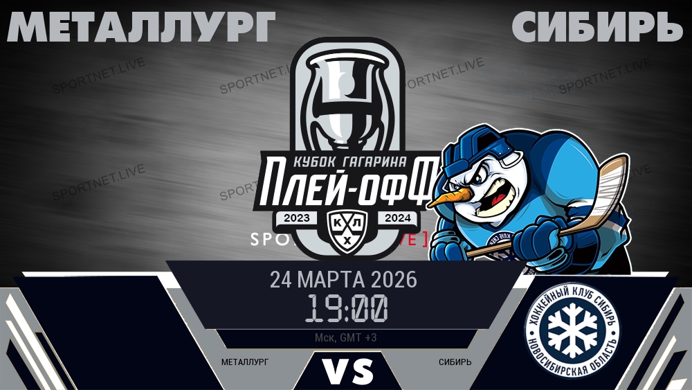 24 марта 2026 года, мы предлагаем посмотреть онлайн трансляцию хоккейного матча между хоккейным клубом Металлург и хоккейным клубом Сибирь, проходящего в рамках чемпионата КХЛ.