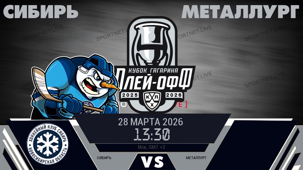 28 марта 2026 года, мы предлагаем посмотреть онлайн трансляцию хоккейного матча между хоккейным клубом Сибирь и хоккейным клубом Металлург, проходящего в рамках чемпионата КХЛ.