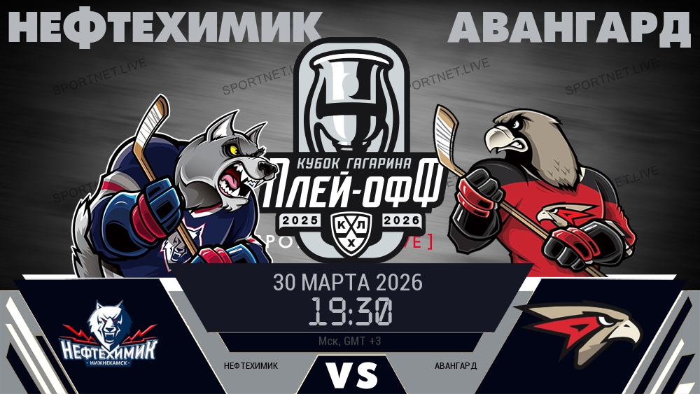 30 марта 2026 года, мы предлагаем посмотреть онлайн трансляцию хоккейного матча между хоккейным клубом Нефтехимик и хоккейным клубом Авангард, проходящего в рамках Серии 1/8 финала ПЛЕЙ-ОФФ чемпионата КХЛ.