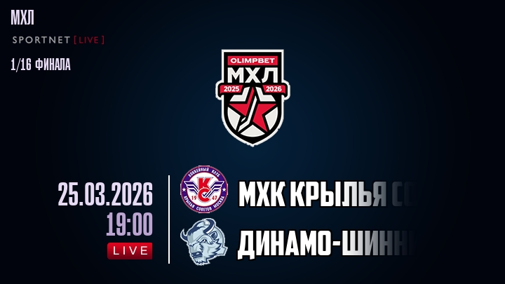 Сегодня, 25 марта 2026 года, мы предлагаем посмотреть онлайн трансляцию хоккейного матча между хоккейным клубом МХК Крылья Советов и хоккейным клубом Динамо-Шинник, проходящего в рамках чемпионата МХЛ.