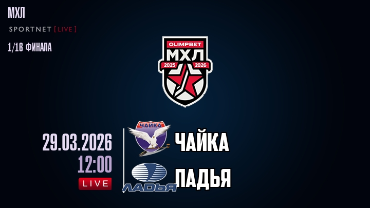 29 марта 2026 года, мы предлагаем посмотреть онлайн трансляцию хоккейного матча между хоккейным клубом Чайка и хоккейным клубом Ладья, проходящего в рамках чемпионата МХЛ.