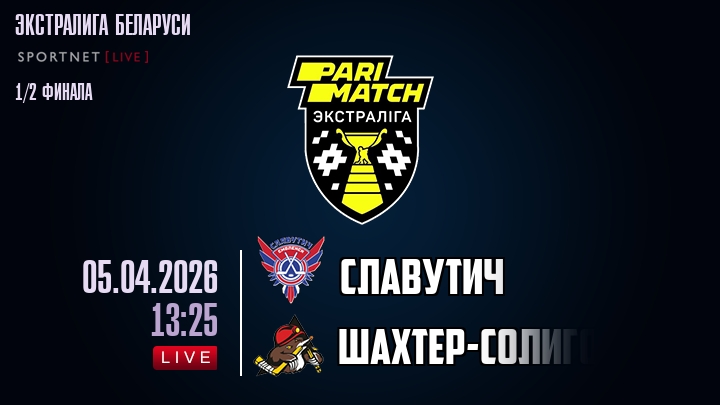 5 апреля 2026 года, состоялась онлайн трансляция хоккейного матча между хоккейным клубом Славутич и хоккейным клубом Шатер-Солигорск, проходящего в рамках Серии 1/2 финала ПЛЕЙ-ОФФ Экстралиги Беларуси.